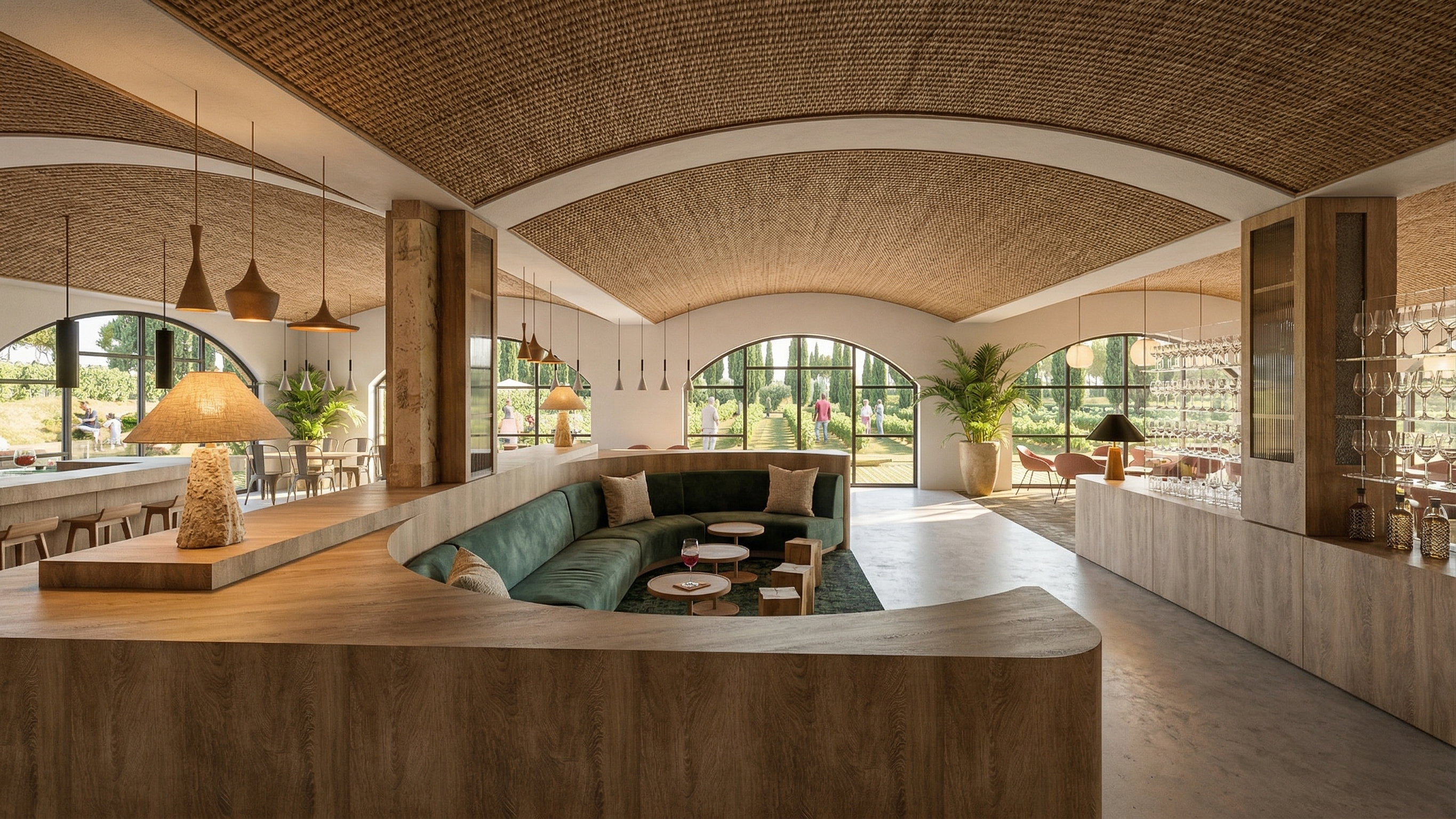 El disseny interior combina materials naturals com la fusta, la pedra i textures càlides per crear una atmosfera acollidora, adequada per a tasts de vi i trobades socials. La distribució permet configuracions flexibles per a diferents tipus d'esdeveniments, incloent tasts, presentacions, trobades corporatives i activitats culturals.