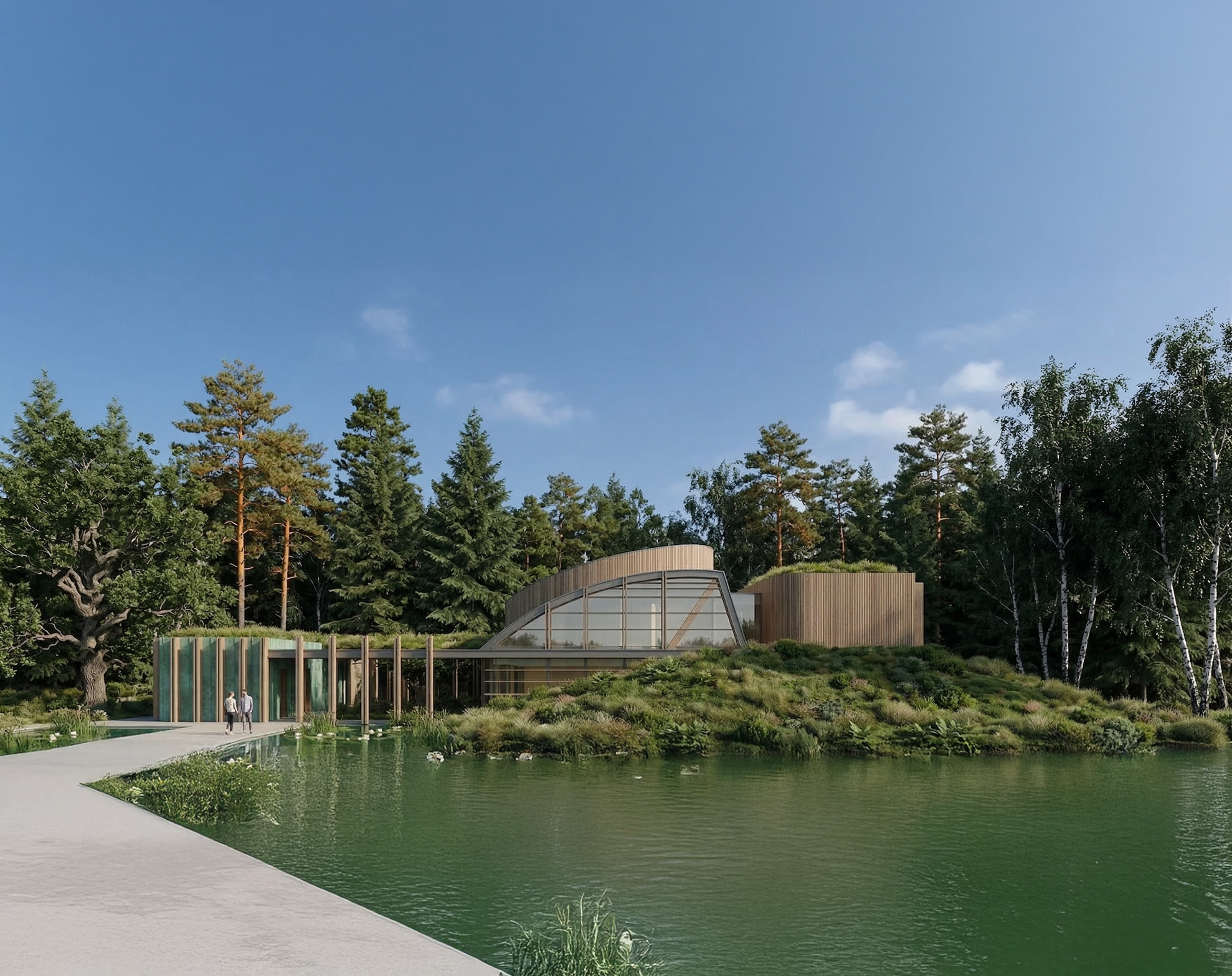 Ubicado a pocos kilómetros de Varsovia, este proyecto ganó el primer premio en un concurso internacional organizado por la propiedad. Cuenta con tres zonas de club diferenciadas dispuestas alrededor de un eje curvo. Un porche formado por arcos crea áreas verdes y terrazas a varios niveles. Estas terrazas conectan las entradas a diferentes edificios: Clubhouse, Centro de Convenciones y Spa – Centro de Meditación.